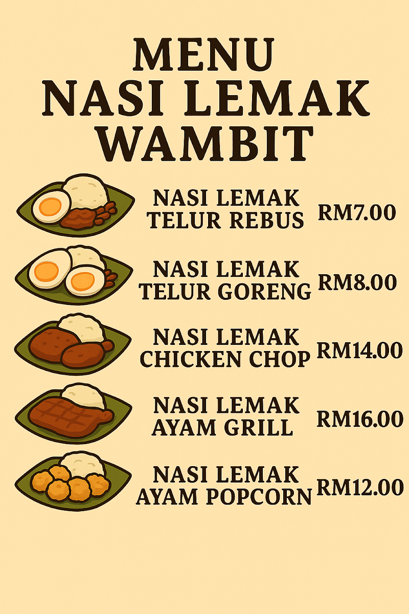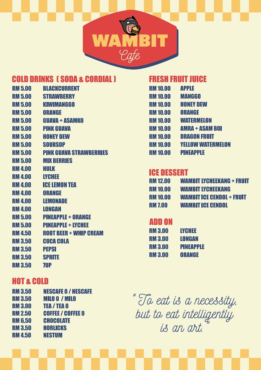 WAMBIT's menu is a delightful fusion of Western and Malay cuisine. Signature dishes include their succulent nasi lemak chicken chop, where the sweet sambal harmoniously complements the fresh chicken. Don't miss out on the lamp chop, a local favorite praised for its exquisite flavor. The café also offers a selection of desserts like cheese tarts, brownies, and burnt cheesecake, perfect for satisfying your sweet tooth.